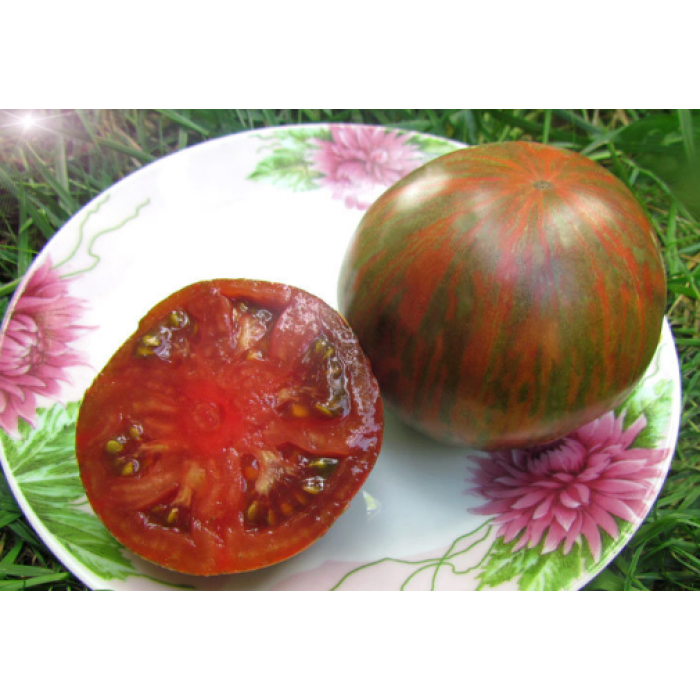 "Зебра чорна" - індетермінантний середньостиглий сорт томата для теплиць і відкритого грунту. Кущ заввишки 1-1,3 м, вимагає підв'язки. Плоди круглі, вирівняні вагою до 110 г. Стиглі плоди строкаті - червоні і жовті смужк... Читати далі...