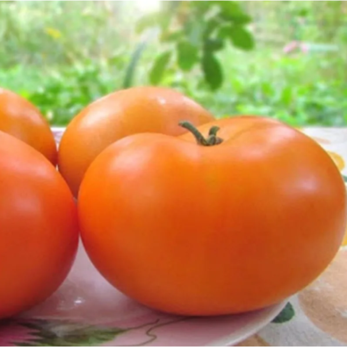 Вперше представлено у 2014 році. Отриманий від схрещування Golden Dwarf Champion x Elbe, названий Tipsy. Плюснуті гладкі округло-плескаті плоди, при дозріванні темні жовті, з блискучим, що світиться насиченим помаранчевим відтінком (що дав назву сорту). Найкращий аромат серед усіх гномів. Середньостиглий сорт (75 днів від пересадки), штамбовий карлик заввишки до 1 м з великим картопляним листям. Високоврожайний сорт із тривалим плодоношенням. Можна не пасинкувати, але бажано підв'язувати.