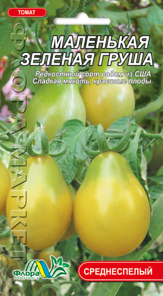 Сорт середньостиглого томата (105-110 днів) родом з США «Little Green Pear». Кущ високий - до 1,80 м, густооблистнений, вимагає опори. Плодоносить простими китицями. Плоди вирівняні за розміром, масою 15-20 г, грушовидної форми і незвичайного зеленого кольору. М'якуш м'ясистий, щільний, смачний і ароматний, солодкий. Дуже добре підходять для цільноплодного консервування. З усіх грушоподібних сортів - це найсмачніший і дуже врожайний сорт!
