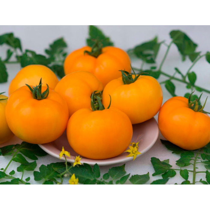 Ранній. Сортотип «Золота королева». Період від сходів до початку дозрівання 105-115 днів. Кущ високорослий, у відкритому ґрунті 120-150 см. Плоди невеликі, круглої форми, вагою 100-150 г, жовтого забарвлення. Без ГМО.... Читати далі...