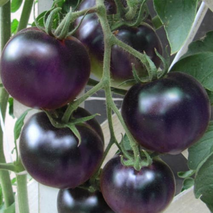 Унікальний салатний сорт із фіолетовими плодами. Кущ середньорослий висотою 1-1,2 м. Середньостиглий (110-120 днів), врожайний, стійкий до вірусу. Зрілі плоди масою 150-180 г мають таке ж темне забарвлення, як у баклажану. У розрізі плід темний бордовий. Смак інтенсивний, свіжий, солодкий і трохи терпкий. Пігмент, що міститься в бузкових томатах, сприяє зниженню ризику захворювання на рак та порушення діяльності серця.