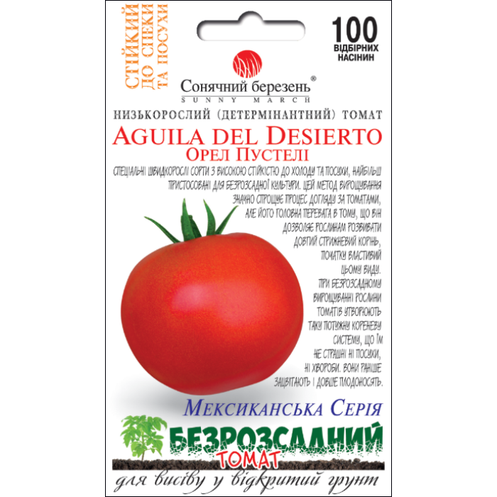 Томат Орел Пустелі - ваш новий улюблений сорт для вирощування на городі. Ця рослина славиться не тільки своєю витривалістю, а й неперевершеним смаком плодів. Насіння Орел Пустелі дарує вам можливість зануритися у світ соковитих, ароматних і корисних томатів, які відрізняються незвичайною стійкістю до посухи та різних хвороб. Цей сорт підходить для початківців городників та досвідчених аграріїв, які цінують якість та надійність.