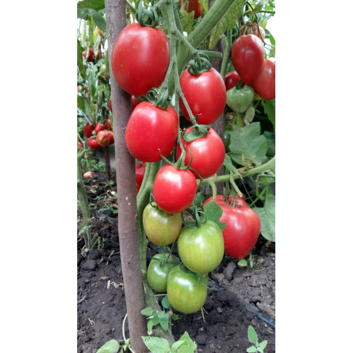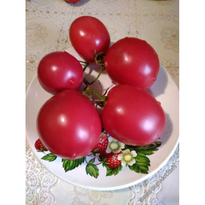 Середньостиглий (90-110 днів) сорт томата з тривалим терміном плодоношення. Кущ високий, іноді до 2,5 м висоти, вимагає опори. Плоди - сливоподібні, які формуються в китицях. Зрілі томати мають рожевий колір шкірки, щільні, не розтріскуються. Маса плодів 150-200 г. Смак хороший або відмінний з фруктовими відтінками. Відрізняється відмінною врожайністю - до 10 кг з куща. Після збору плоди довго зберігаються, завдяки відмінній лежкості. Невибагливий до погодних і ґрунтових умов. Для свіжого споживання та консервування. Стійкий до захворювань.