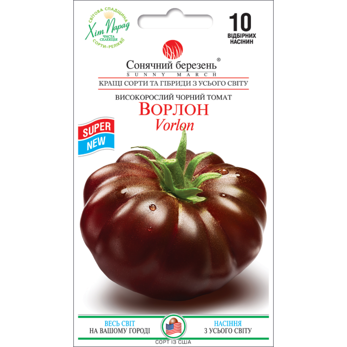 Приголомшливий коричневий, помідор з красивими округло-плескатими плодами, дуже смачний і наповнений багатим, димним смаком, який зробив знаменитим темні сорти. Vorlon з'явився в 1999 році в штаті Мен в результаті випадкового схрещування Cherokee Purple (Чероки фіолетовий) c Pruden`s Purple (Пурпурний Прудена) і названий на честь вигаданої інопланетної раси в телесеріалі «Вавілон-5», він більш врожайний Purple. Якщо Ви любите темні помідори, або якщо ви їх ніколи не куштували, то Vorlon вартий того, щоб його спробувати. Це добре збалансований за цукристістю та кислотністю помідор з м'якою ніжною плоттю, яка тане в роті. Вага плодів іноді досягає 1 фунта (до 500 г), але їхній середній розмір близький до 10 унцій (до 300 г). Рослини індетермінантні, висотою близько 180 см, середньостиглі (80-95 днів після пересадки). Це відмінний помідор для сендвічів, сальси, соку та для їжі свіжозібраних плодів прямо з грядки.