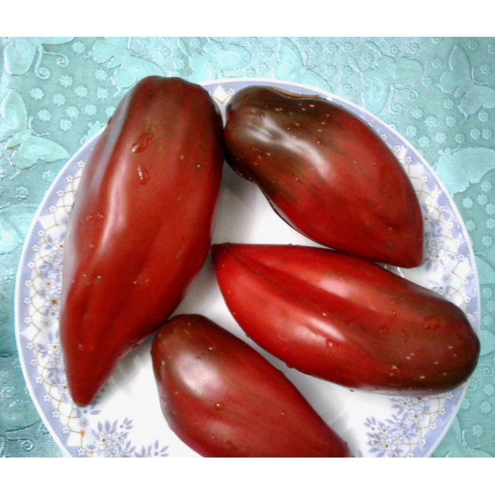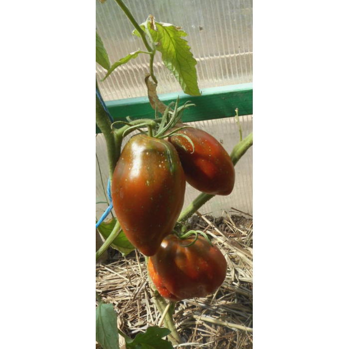 Шалено смачний сорт з незвичайною зовнішністю, що росте величезними потужними рослинами висотою близько 2 метрів. Плоди добре зав'язуються, навіть у сильну спеку, не скидаючи зав'язі. На одній рослині одночасно ростуть помідори двох видів, що властиво старим італійським сортам. Основна маса у вигляді довгих перцевидних, з невеликими та частими ребрами томатів . Оригінальні красиві помідори коричневого забарвлення набирають вагу понад 300 г. Вони мають бездоганний солодкий смак коричневого томатного м'якуша, майже без насіння, покритого міцною шкіркою, яка не тріскається, але легко знімається з плоду. Цей сорт середньостиглий, історично вирощується для соусів та пасти. Його томати консервують та в'ялять, використовують свіжими. Дає густий сік, солодкий, з мінімумом кислоти, майже коричневого кольору та класичного томатного смаку.