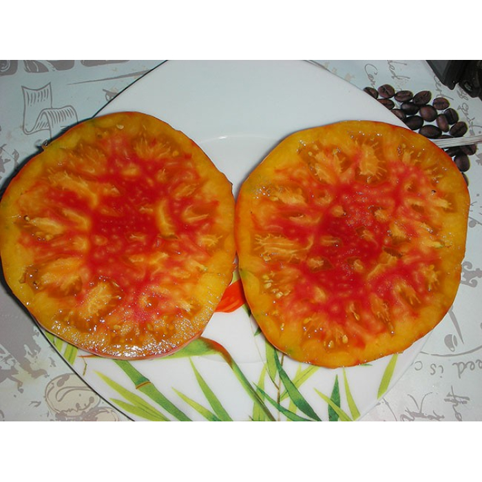 Сімейна реліквія, гордість штату Техас, вперше представлена у 1980-х роках. Великі, індетермінантні рослини висотою близько 1,8 м із звичайним листям дають багато дуже великих, вагою 1-2 фунти (400-800 г) двоколірних том... Читати далі...