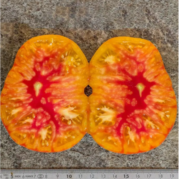 Сімейна реліквія, гордість штату Техас, вперше представлена у 1980-х роках. Великі, індетермінантні рослини висотою близько 1,8 м із звичайним листям дають багато дуже великих, вагою 1-2 фунти (400-800 г) двоколірних томатів, жовтих з червоними смужками та мармуровістю всередині та зовні, і, як правило, червоною зіркою на нижній конус. Ці біфштексні помідори округло-плескаті, у верхній частині глибокі канавки, з яких починаються жолоби, що звисають, значно збільшують плід. Тонка ніжна шкіра покриває щільний і соковитий м'якуш, дуже солодкий, з добре збалансованим вмістом кислоти, чудовим томатним ароматом, з невеликим вмістом насіння. Хороший вибір для барвистого салату, томатного соусу, густої нарізки для бутербродів або свіжої їжі прямо з лози. Із цього помідора готують смачний томатний соус «Техаська зірка» для техаської пасти. Продуктивний і стійкий сорт починає дозрівати через 85 днів після пересадки. Дає високі врожаї у другій половині сезону. Терпимо до посухи.