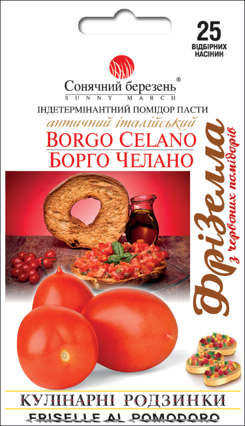 Середньостиглий італійський сорт із дружним плодоношенням та яскравим насиченим смаком. Формує потужні, високорослі рослини (індетермінантний тип) з добре облистненими пагонами. Плоди округлі, трохи подовжені, масою 50-100 г, при повному дозріванні забарвлюються в насичений червоний колір. М'якуш щільний, соковитий, з вираженим солодко-кислим балансом, ідеальний для свіжого споживання, приготування соусів, пасти, консервації та сушіння. Сорт відрізняється гарною транспортабельністю та стійкістю до розтріскування.
