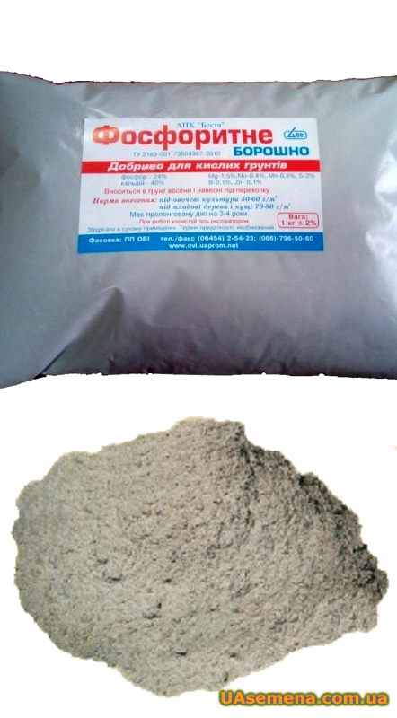 Фосфоритная мука - минеральное фосфорное удобрение при внесении в почву ослабляет вредную для растений и микроорганизмов кислотность почвы, поэтому, незаменимо ее внесение на кислые, дерново-подзолистые почвы, и для обогащения выщелоченных черноземов. Фосфоритная мука - способствует повышению урожайности культур, устойчивости растений к различным заболеваниям, благоприятно влияет на улучшение пищевых достоинств качества сельскохозяйственной продукции, повышает содержание сырого протеина и фосфора в зерне и сене, сахара в корнеплодах сахарной свеклы и крахмала в клубнях кортофель, качество льна, обеспечивает повышенное содержание белка в зерне. Повышает зимостойкость озимых культур и клевера.Фосфоритная мука обладает существенными экономическими и экологическими преимуществами перед водо-растворимыми фосфорными удобрениями, особенно при ее применении на кислых почвах. Фосфоритная мука - хорошо смешивается с органическими удобрениями (навоз, компост и т.п.), увеличивая эффективность их применения и плодородие почвы, не вымывается из почвы, в течение 5-7 лет, отпадает необходимость внесения дополнительных фосфорсодержащих удобрений.При использовании фосфоритной муки необходимо учитывать условия, определяющие ее действие (химические и физические свойства почв, особенности растений в усвоении фосфора, особенности действия в севообороте) как средних доз фосфоритной муки для большего числа случаев можно рекомендовать 3-4 центнера на гектар (45 - 60 кг действующего вещества).