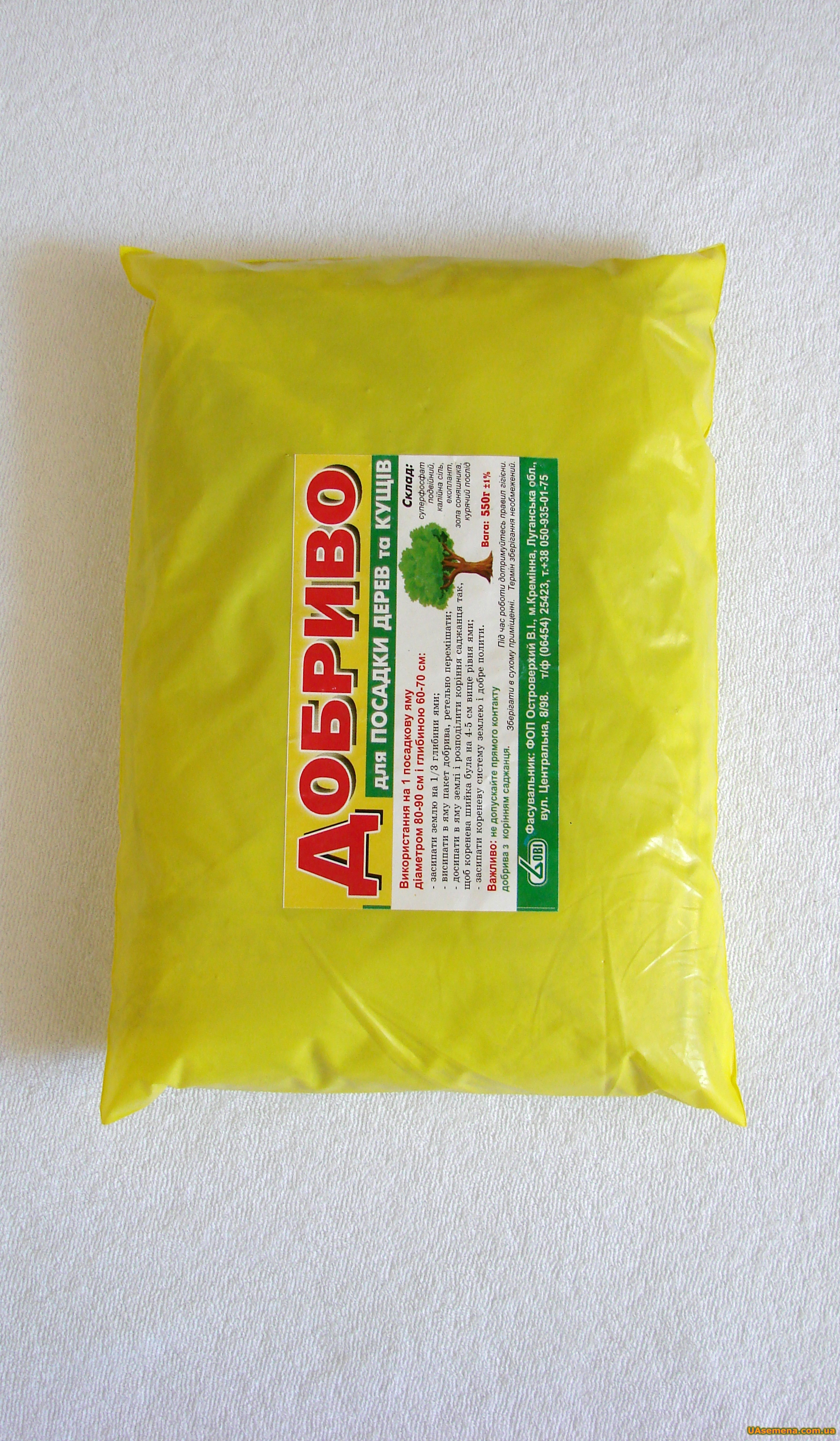 Готовое к применению удобрение для посадки деревьев и кустов. Содержит суперфосфат двойной, калийную соль, экоплант, золу подсолнуха, куринный помет. Данная фасовка рассчитана на 1 посадочную яму диаметром 80-90 см. и глубиной 60-70 см. В случае посадки кустов или деревьев с небольшой корневой системой - содержимое пакета возможно разделить на 2 или 3 посадочные ямы. Перед посадкой удобрение необходимо смешать с землей в посадочной яме. Инструкция по посадке изложена на упаковке.