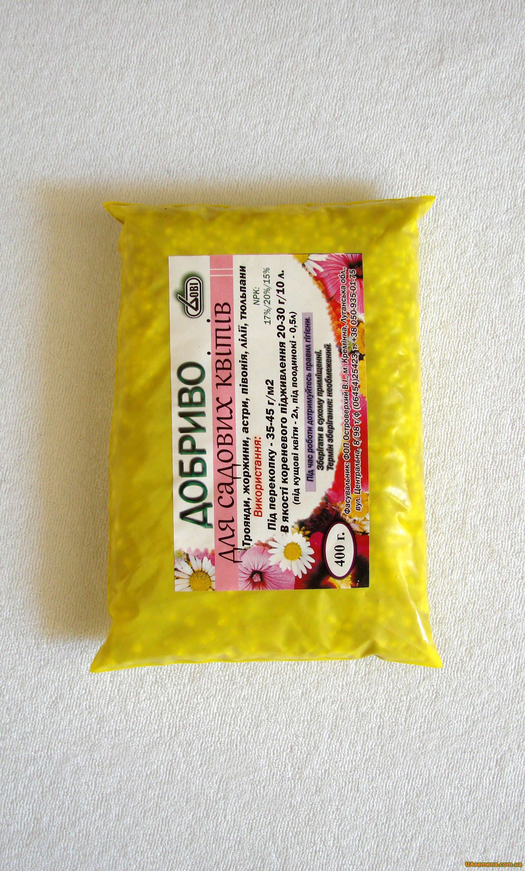 Готовое граннулированное удобрение. NPK: 17%/ 20%/ 15%. Рекомендуется использовать для роз, георгин, астр, пионов, лилий, тюльпанов и других цветов в саду. При перекопке/пересадке растений вносится 35-45 г. на метр квадратный. Возможно разводить с водой и поливать растения.