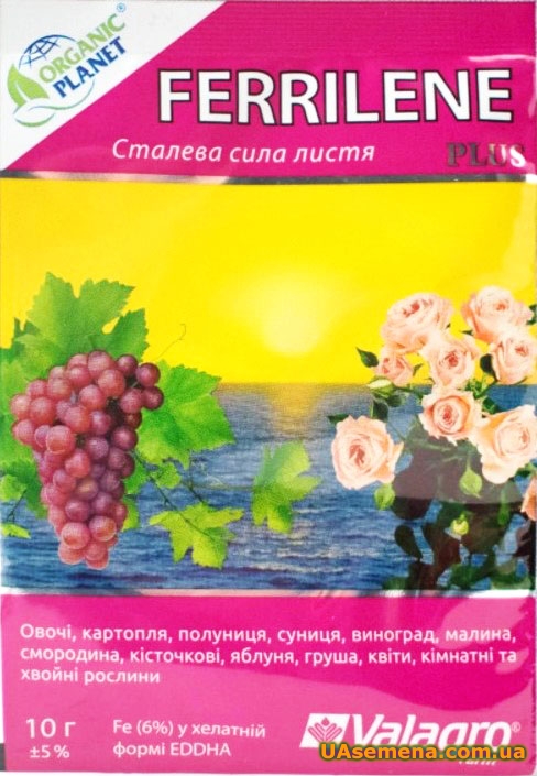 Железосодержащее удобрение в хелатной форме, применяется для подкормки овощных, плодово-ягодных, декоративных и цветущих растений при нехватке железа в растениях. Подкормка препятствует развитию и распространению хлороза листьев, восполняет дефицит железа. Удобрение содержит в составе прилипатель, который снижает поверхностное натяжение раствора на листьях и позволяет охватить большую площадь поверхности растений.