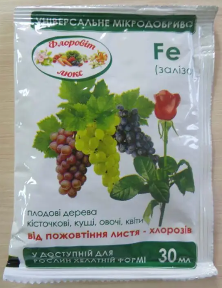 Універсальне мікродобриво Fe (залізо) - усуває дефіцит заліза у рослинах, і тим самим запобігає міжлистовому хлорозу молодого листя, пожовтінню всієї листової пластини, зниженню вмісту цукрів. Бере участь у функціонуванні основних процесів дихання і фотосинтезу, у відновленні молекулярного азоту і нітратів до аміаку, каталізує початкові етапи синтезу хлорофілу. Нестача заліза часто має місце при перезволоженні, тому у цілому препарат покращує інтенсивність дихання, біо- і фотосинтез, запобігаючи пожовтінню листя (хлорозу), що позитивно впливає на якість урожаю та зовнішній вигляд квітів.