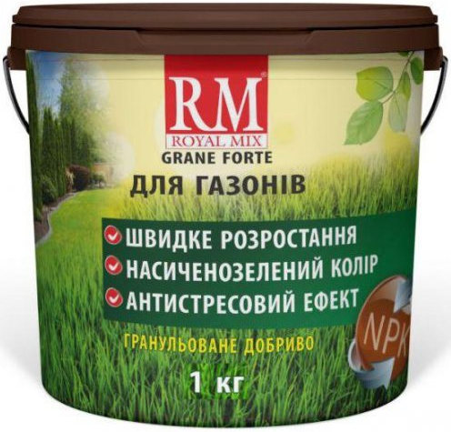 Royal Mix для газону - комплексне мінеральне добриво для грунтового внесення з ідеально збалансованим вмістом макро- та мікроелементів в кожній гранулі. Розчиняється під дією вологи грунту. Забезпечує поступове контрольоване вивільнення поживних речовин для рівномірного росту та розвитку рослин. Містить азот у двох формах: нітратній (для швидкого засвоєння) і амонійній (для пролонгованої дії). Виключає можливість хімічного опіку кореневої системи. Не вимивається в нижні шари грунту. Не злежується.